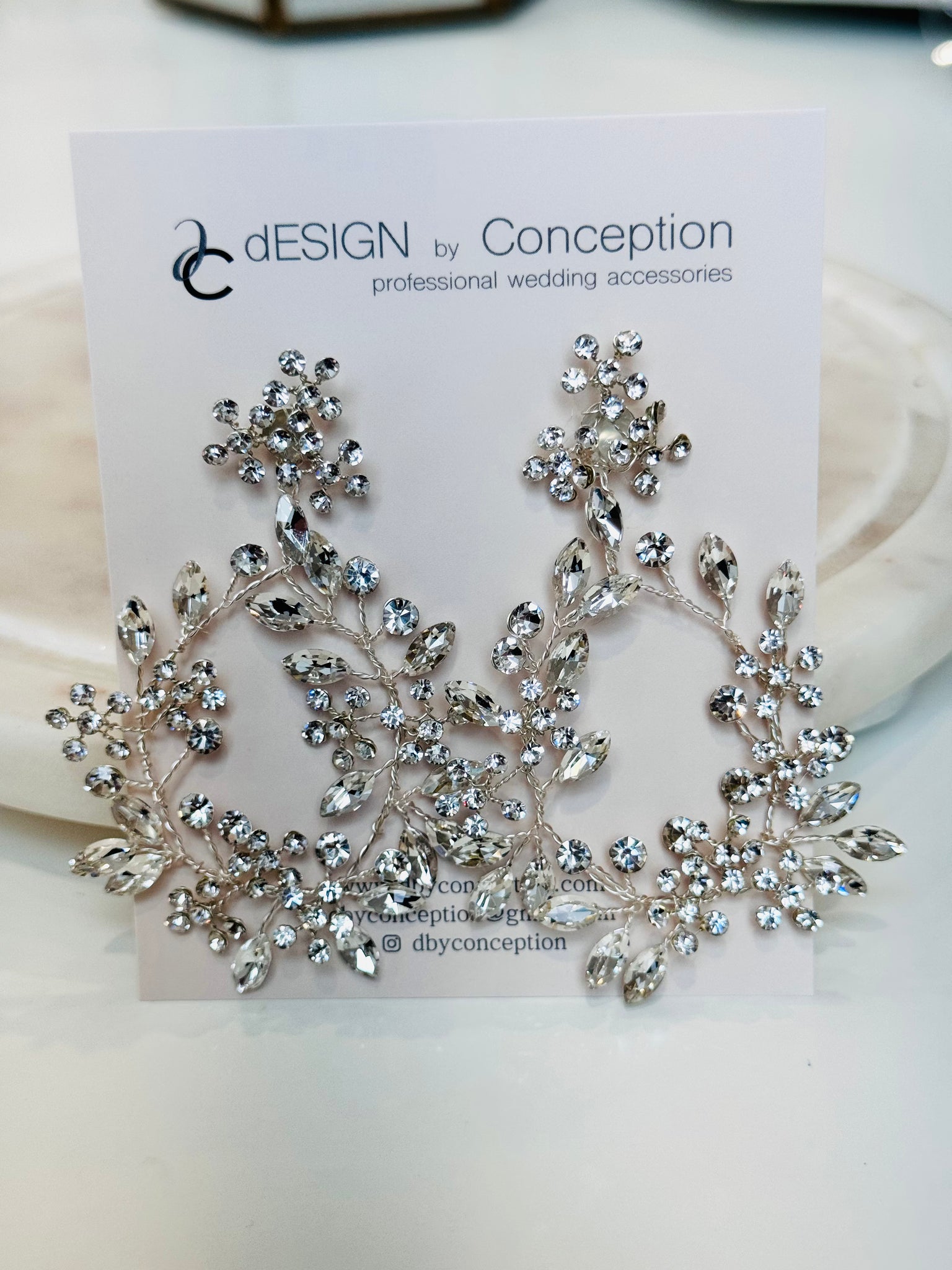 Elegant with a modern edge, the Kennedy Earrings feature a bold statement hoop with shimmering crystals for a glamorous finish. Their structured silhouette adds sophistication to any bridal or evening look, making them a perfect choice for those who love sparkling whimsy and confident sparkle. Kennedy is where timeless elegance meets contemporary charm.