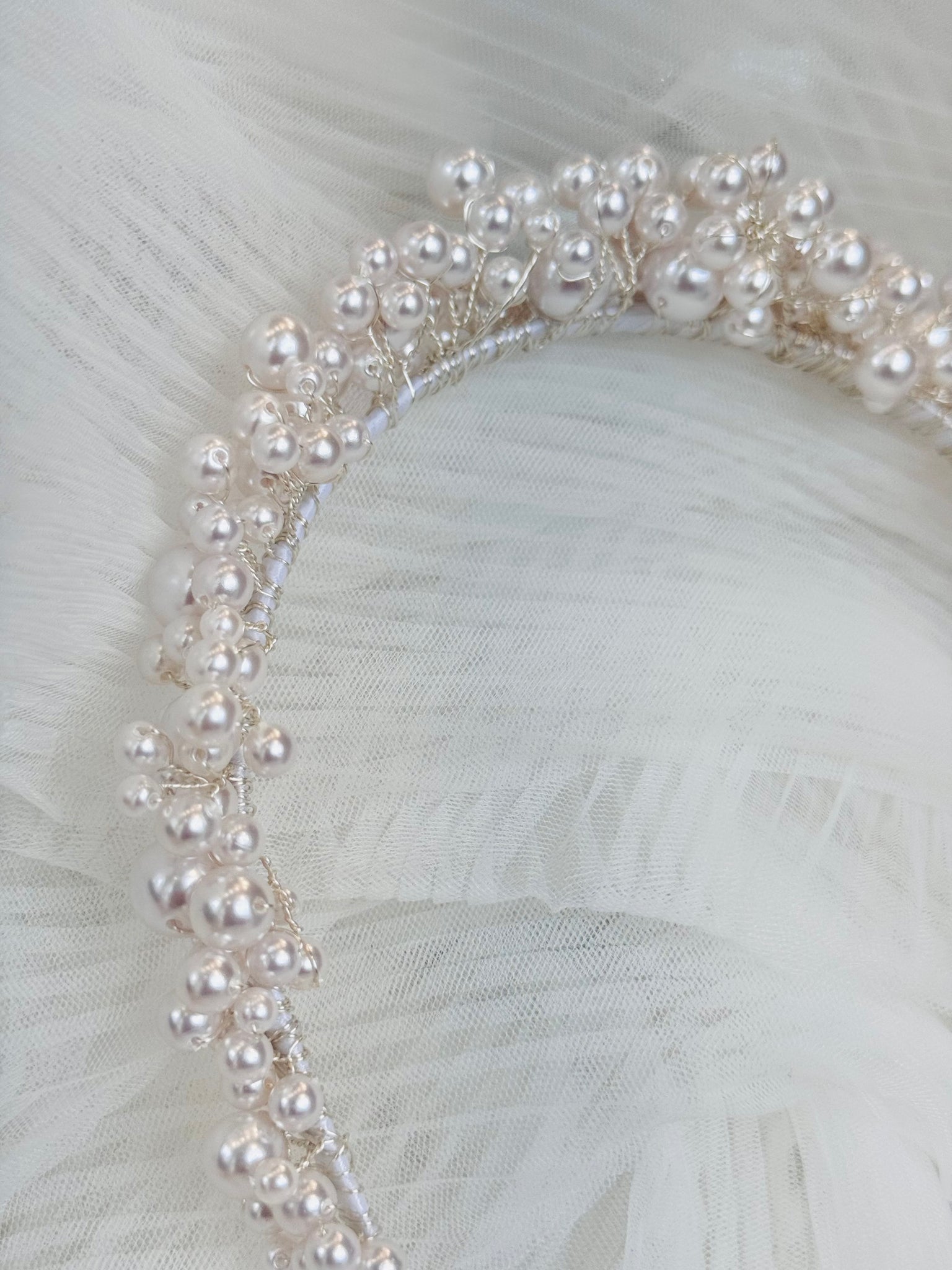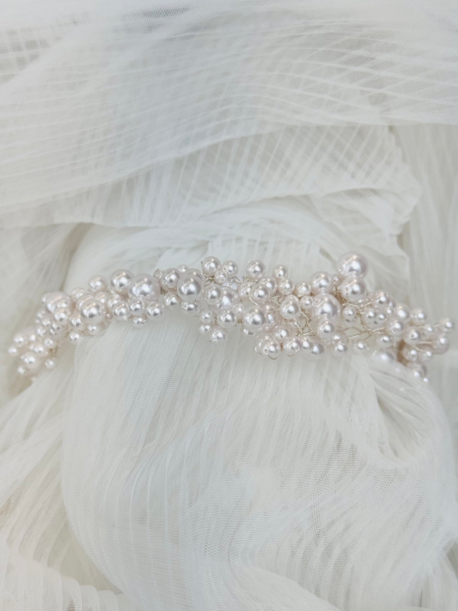Regal and radiant, the Aurora Tiara features a stunning arrangement of shimmering crystals in a rising, crown-like silhouette. Designed to captivate from every angle, it brings a fairytale elegance to any bridal look. Whether paired with a flowing veil or worn as a statement piece on its own, Aurora is the perfect finishing touch for a truly enchanting moment.
